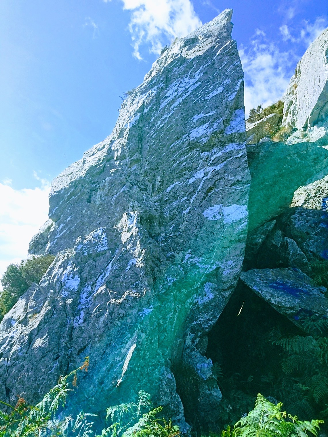 Located just below the cross