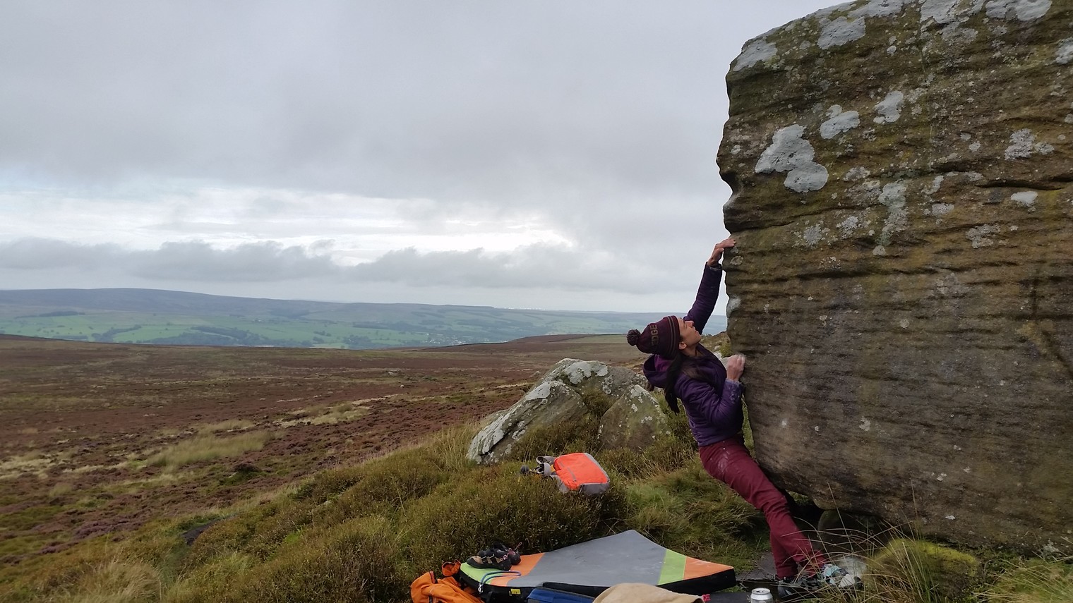 Charlotte Evans Pulling hard on Blunt Arete.