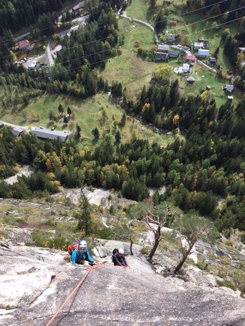 Simultanious climbing at "Voie Pinola" Chamonix, Barbiere
