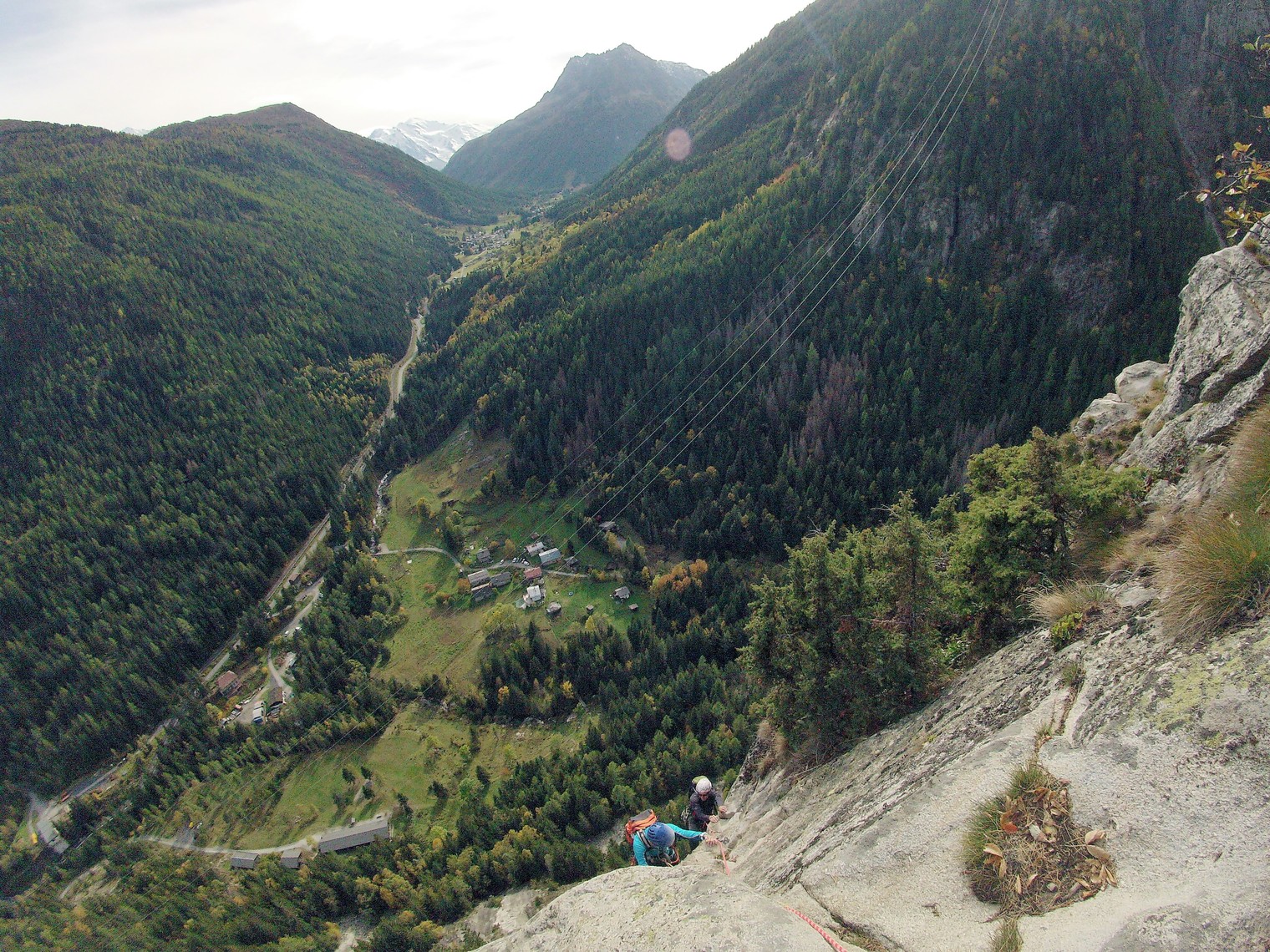 Simultaneously climbing at Barbiere, Chamonix. Mt.Blanc in the horizon