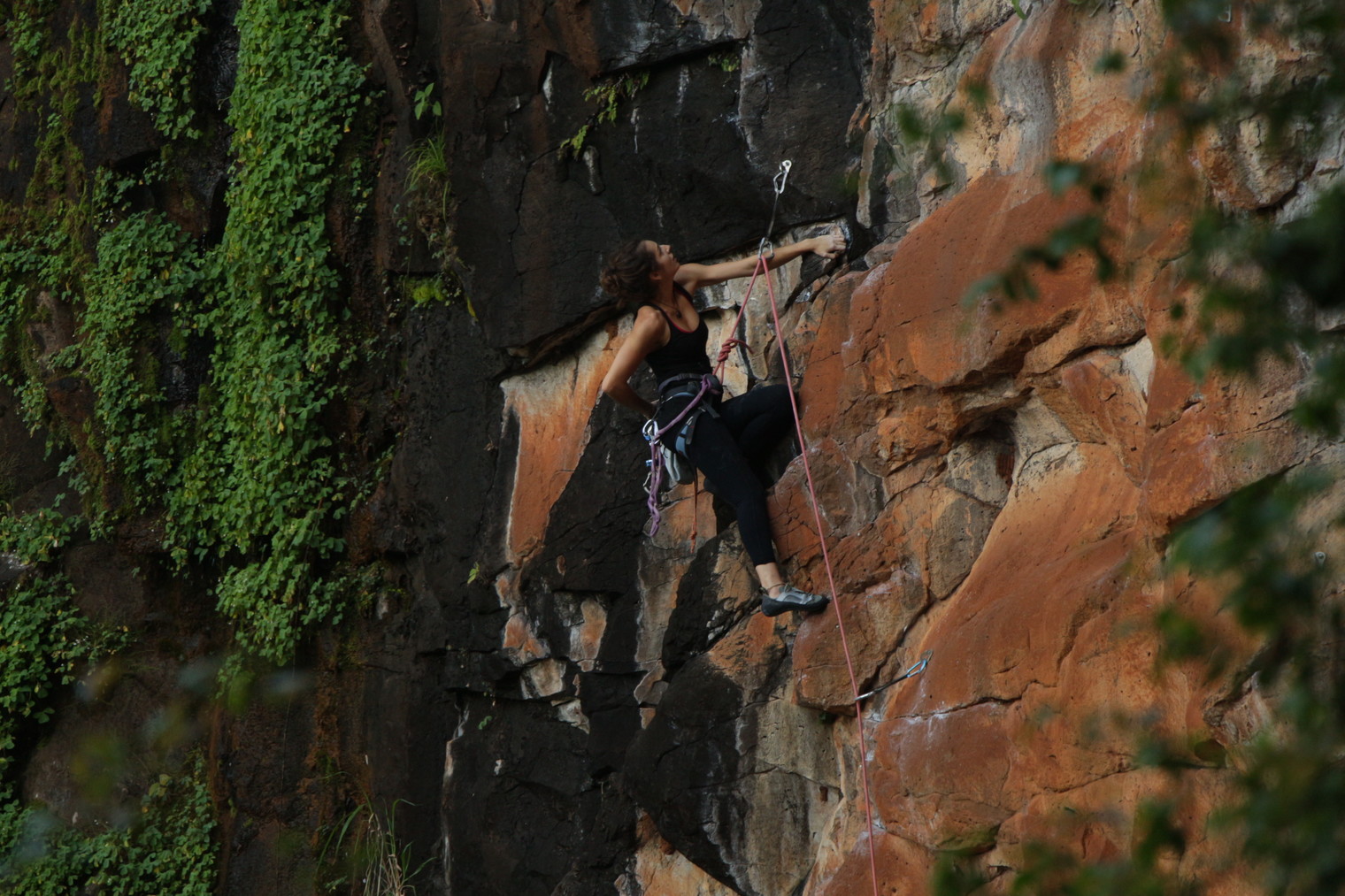 Alana na via Vida Longa ao Climb.