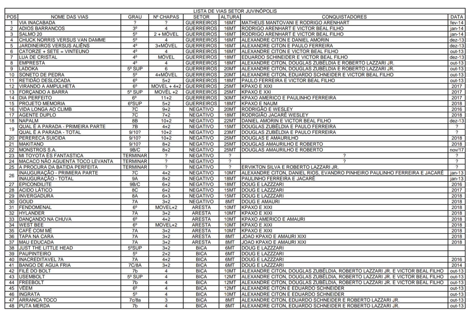 Lista de Vias