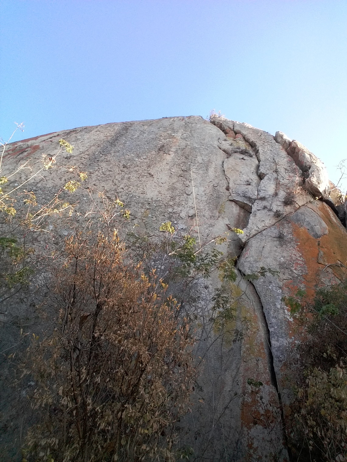 22 meter crag with different route options. Not yet bolted. Trad and top rope possible.