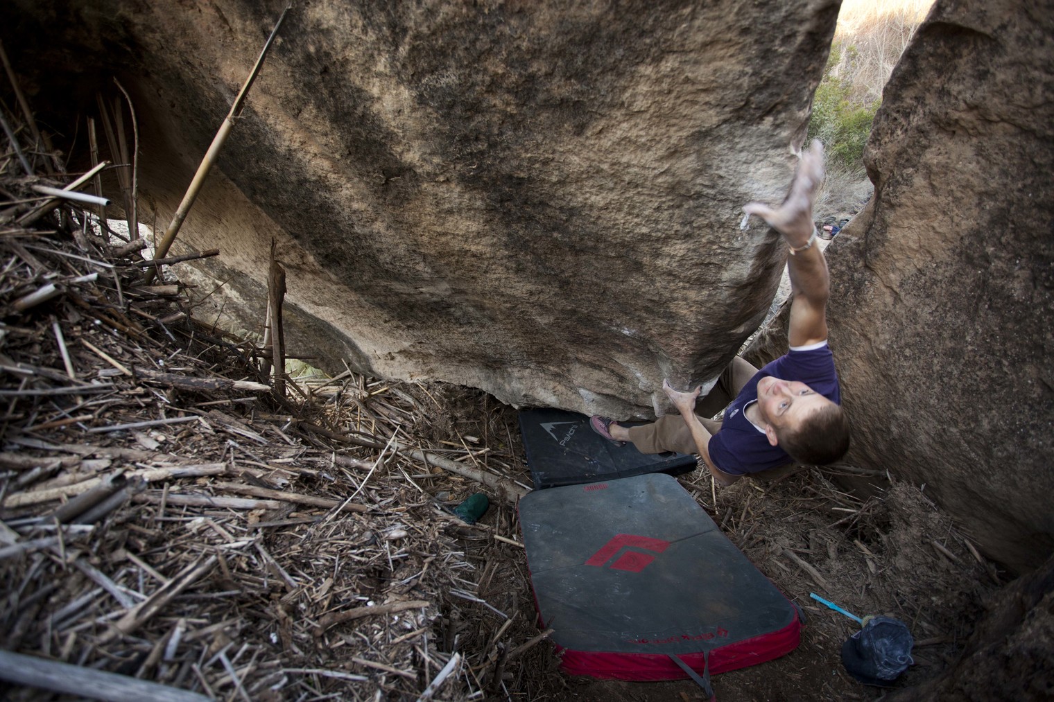 Seba working for the first ascent of Estrella de Porno
