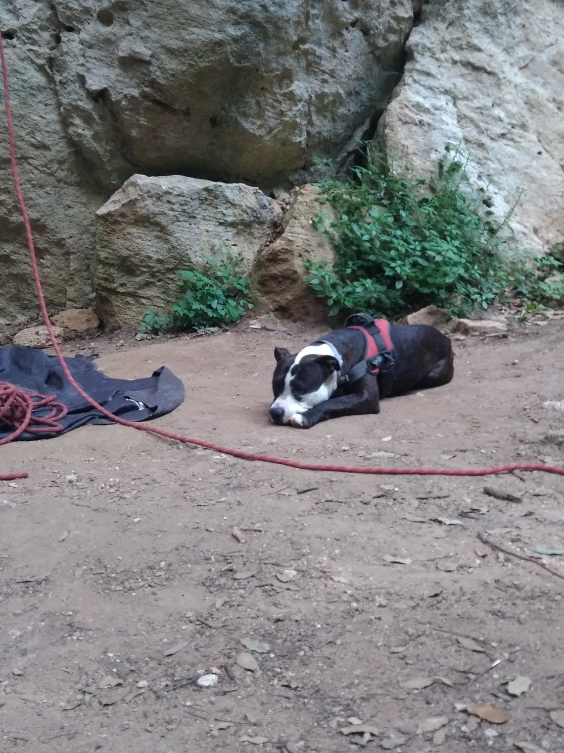 Pablo rests at the feet of "Asgard"
