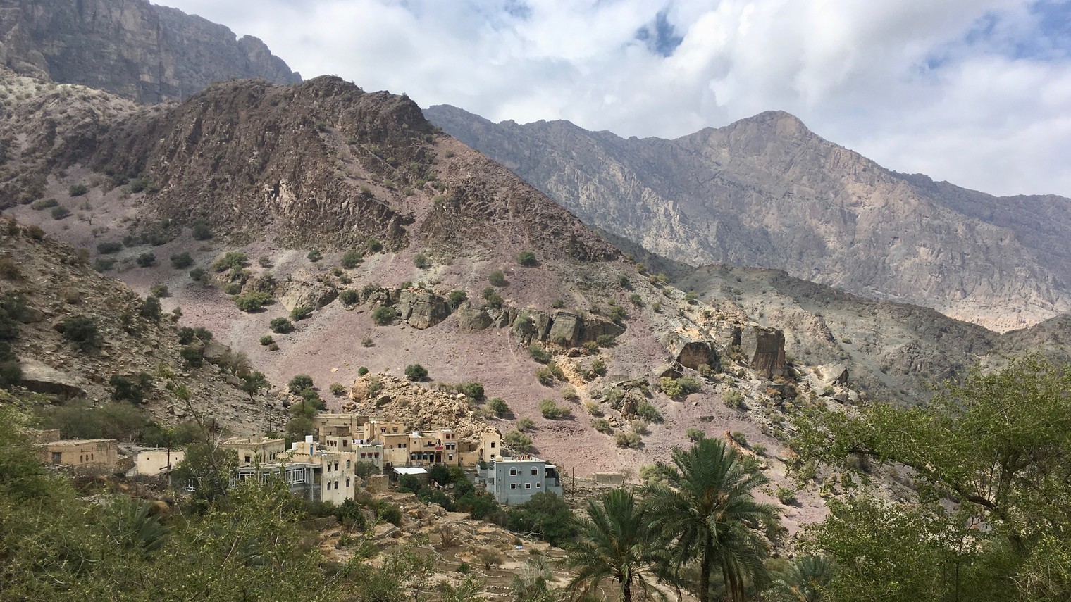 A stricking walk through hadash to access the climbing areas, in the backgound