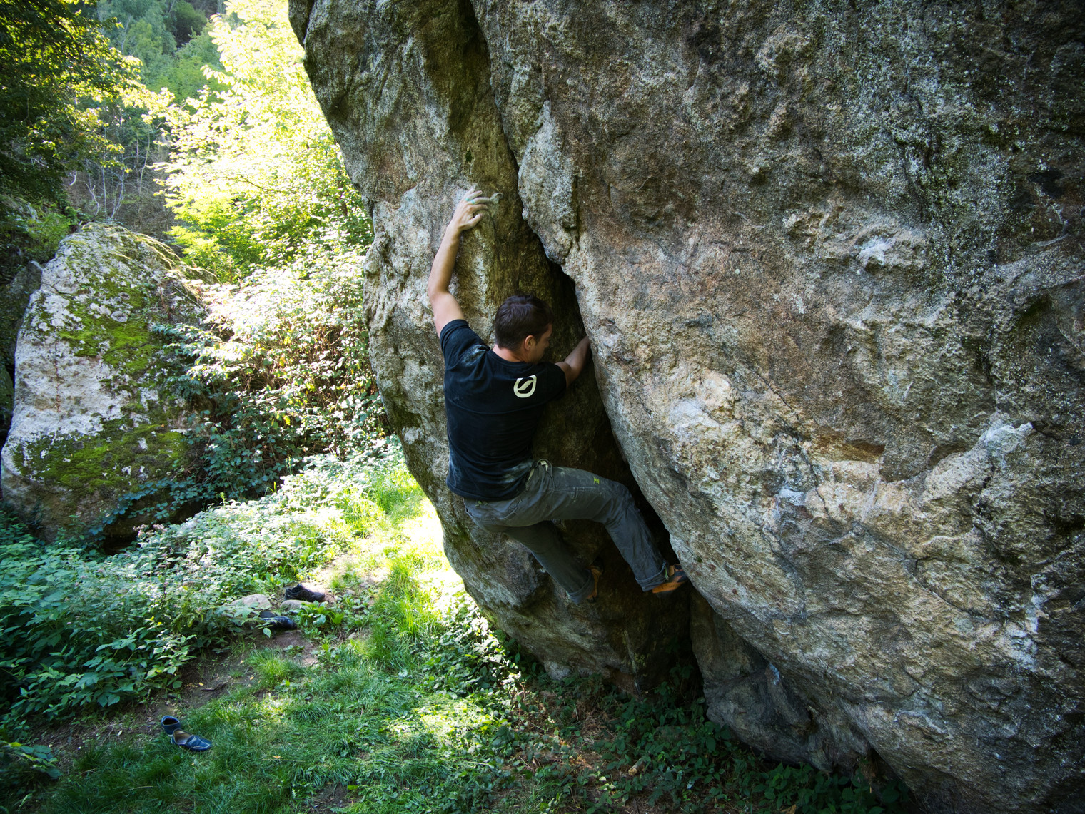 Alain Oliviero working on Blanc 18, an offwidth crack problem