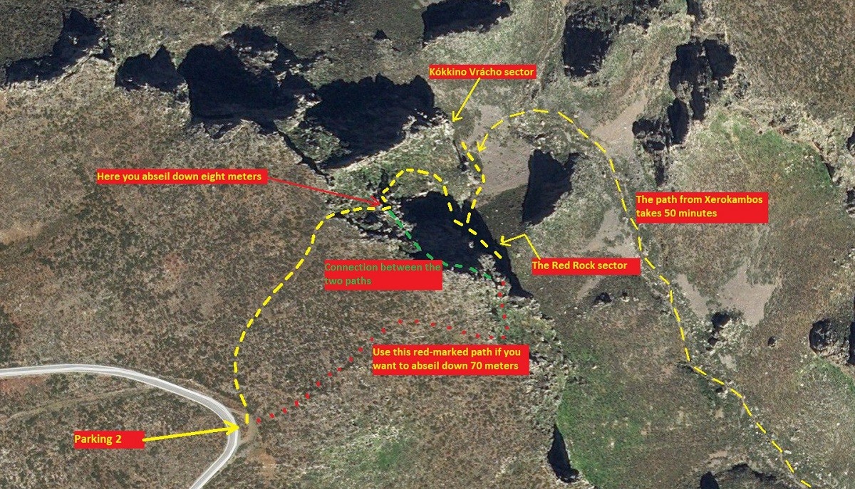 The access to the sectors "Red Rock" and the "Kókkino Vrácho"