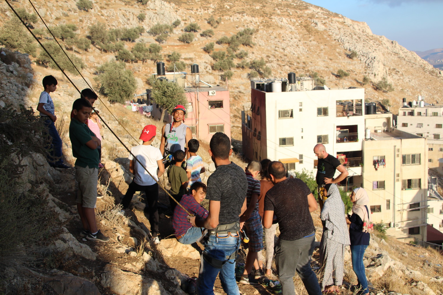 Wahid Masri and a group of local kids