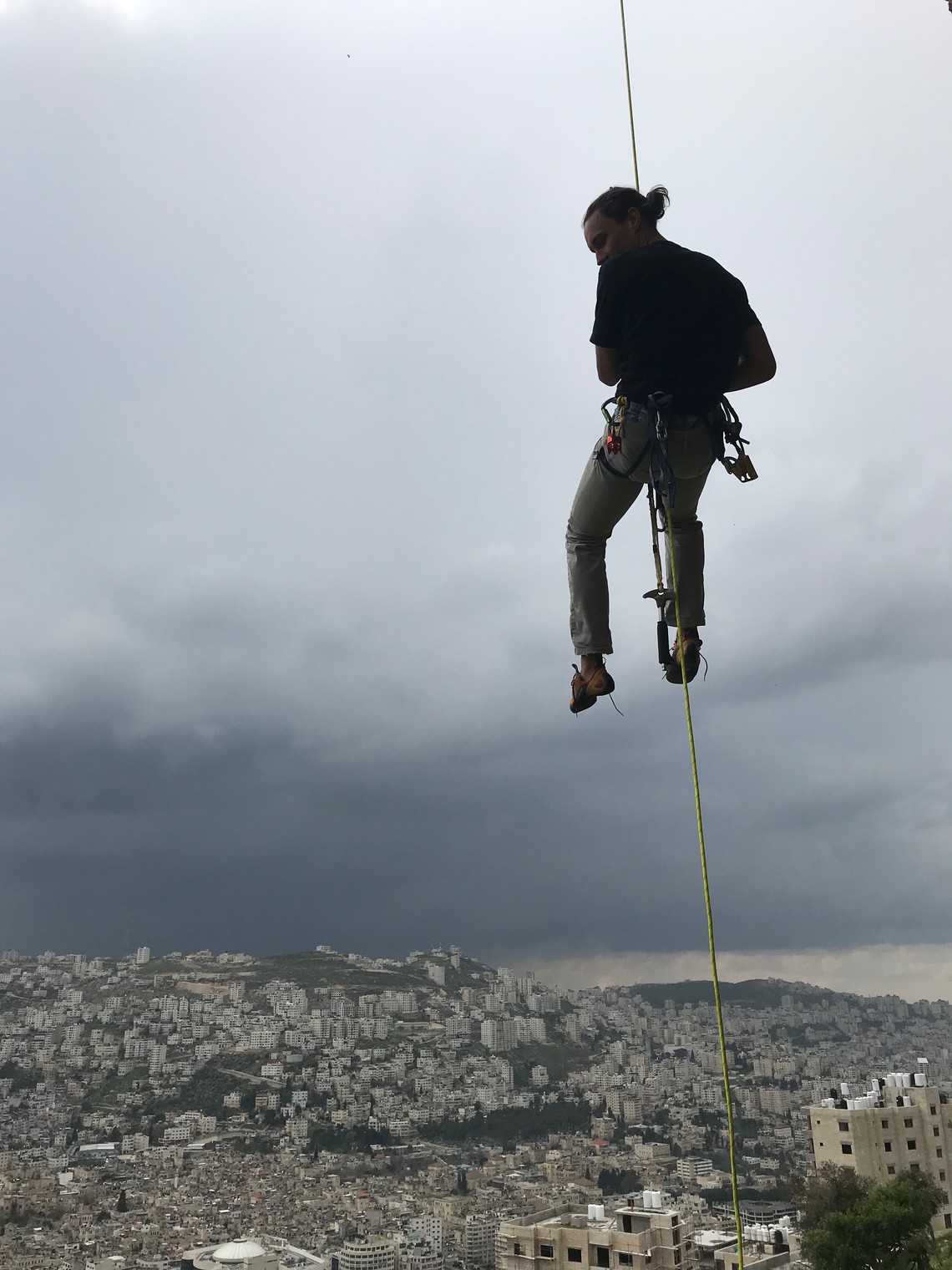 Matthias Wurtenberger on rappel above Nablus
