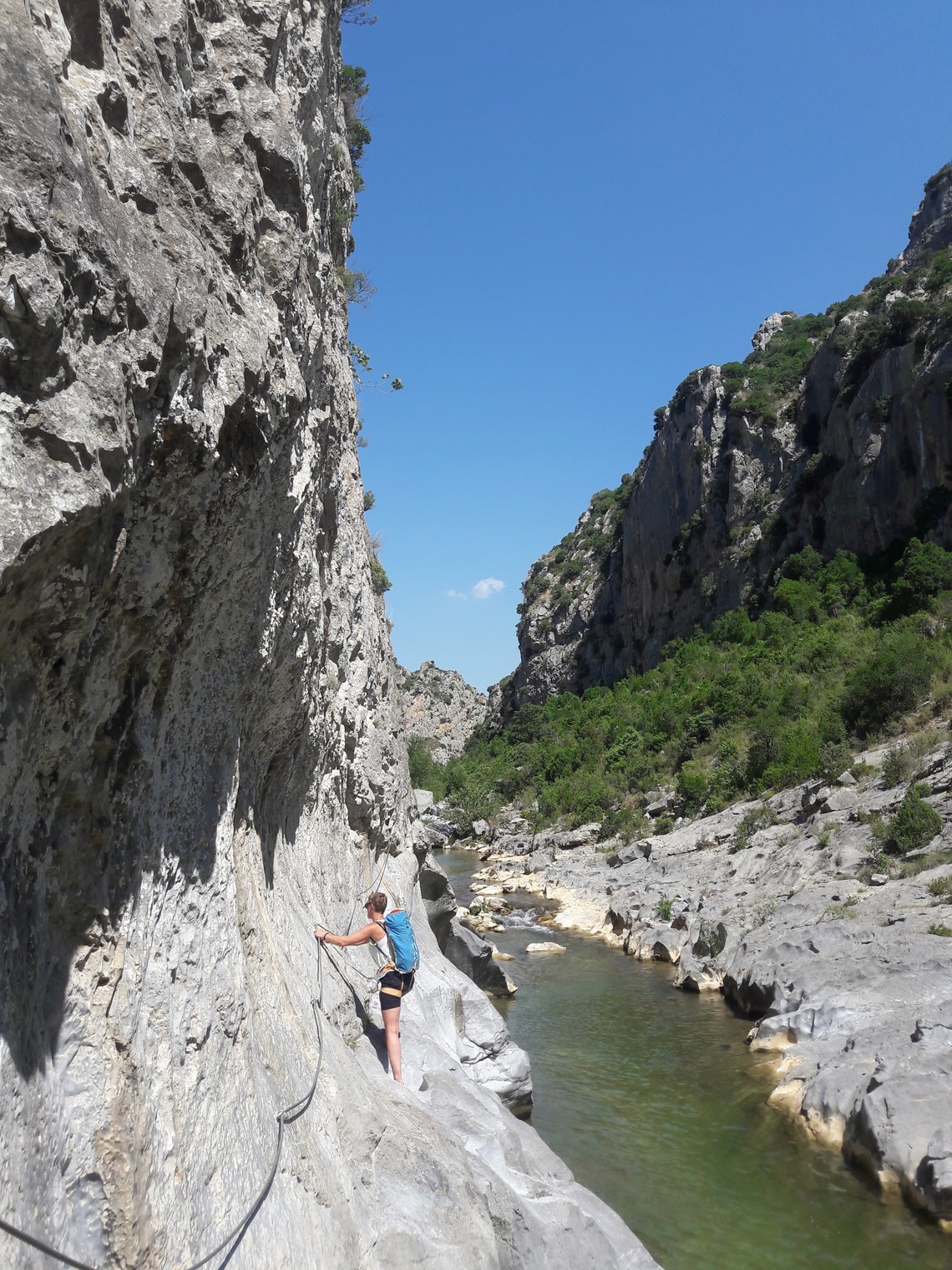 Vivi on the traverse to reach the crags upstream.