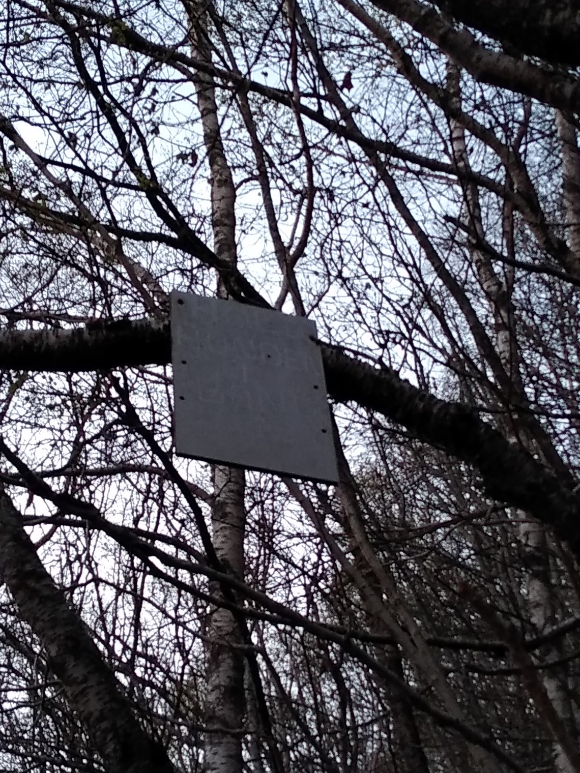 Sign at the path just below "Hald hunden i band" boulder