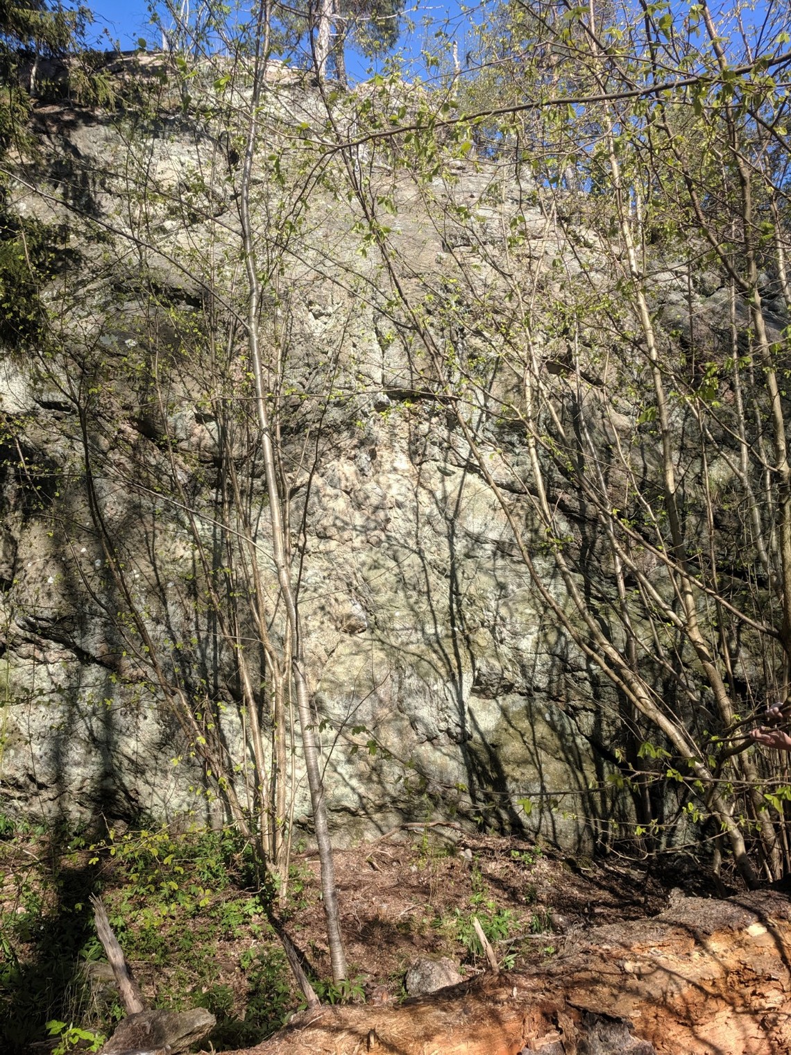 Från promenaden längst vattnet kan man innan Liljekonvaljen blommor och Hasseln fått blad om våren lätt hitta denna fantastiska klippa. Det är sol hela dagen och är riktigt vacker utsikt över skärgården när man kommer upp!