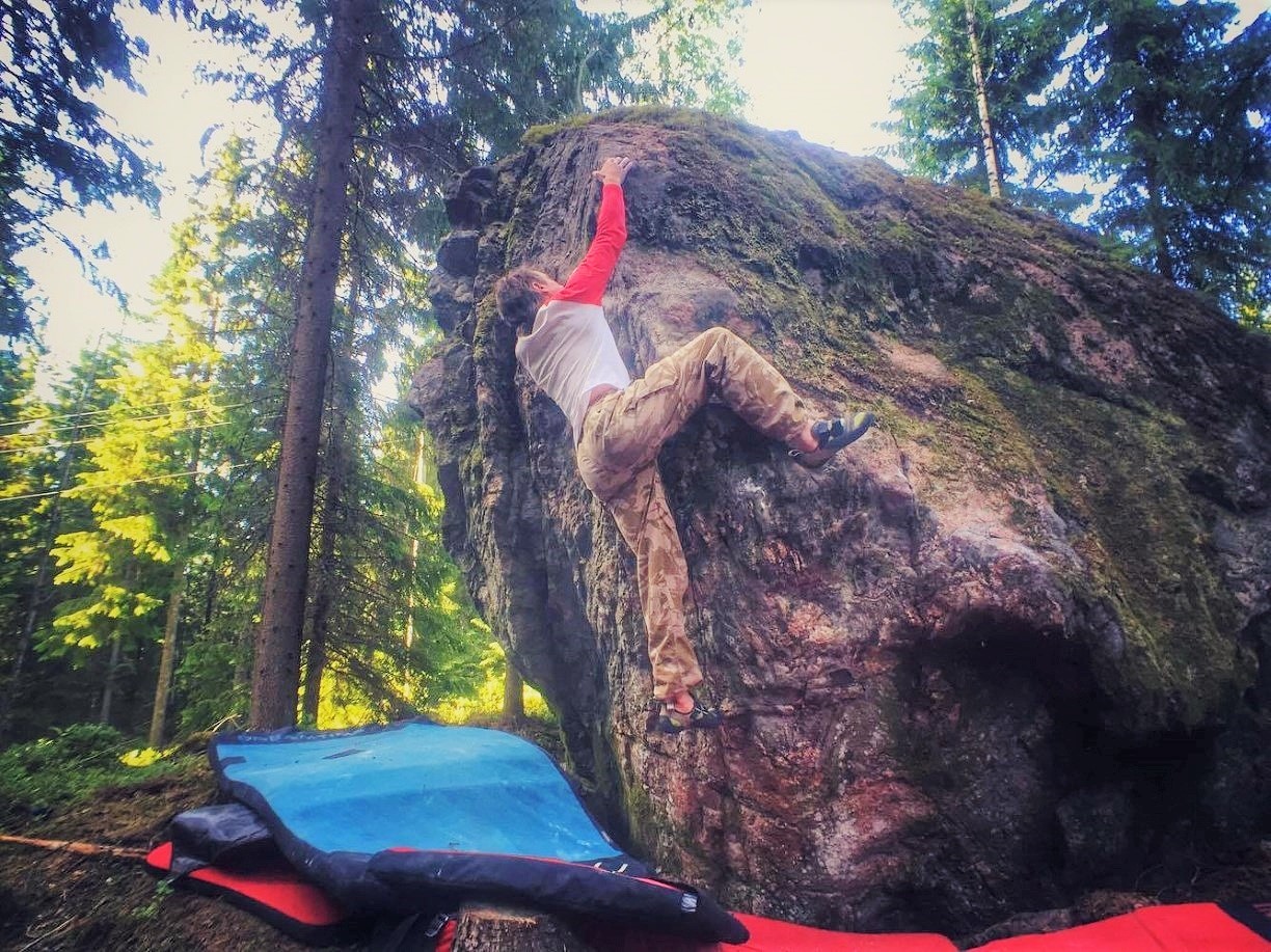 Kimmo climbing "Fall of Fame" back in 2016