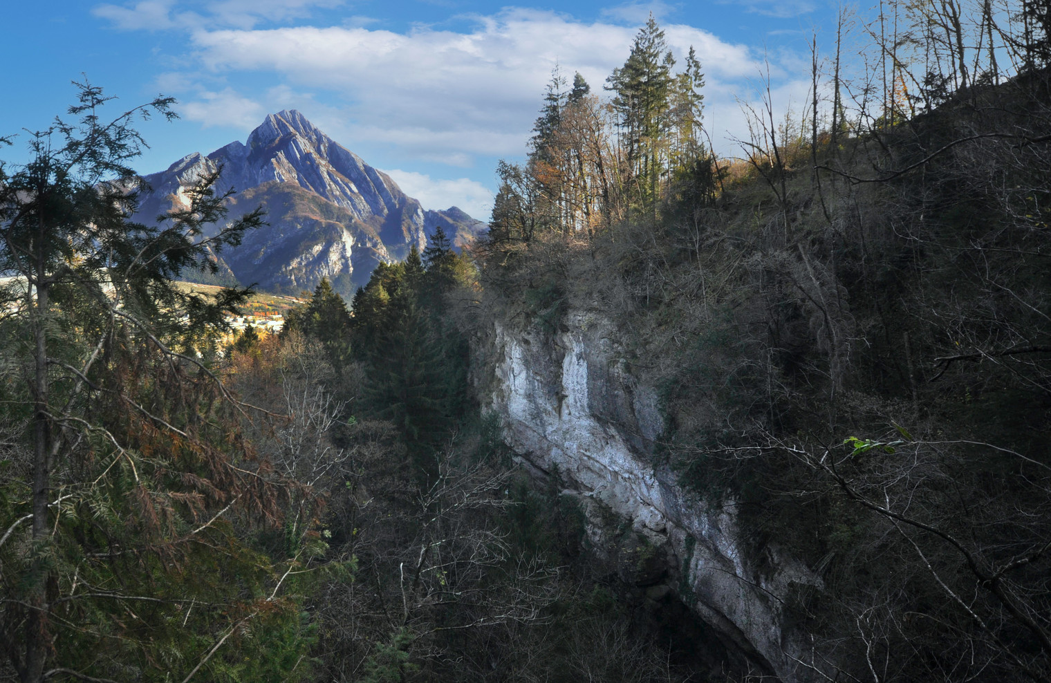 View of the crag with Mount Amariana in the background