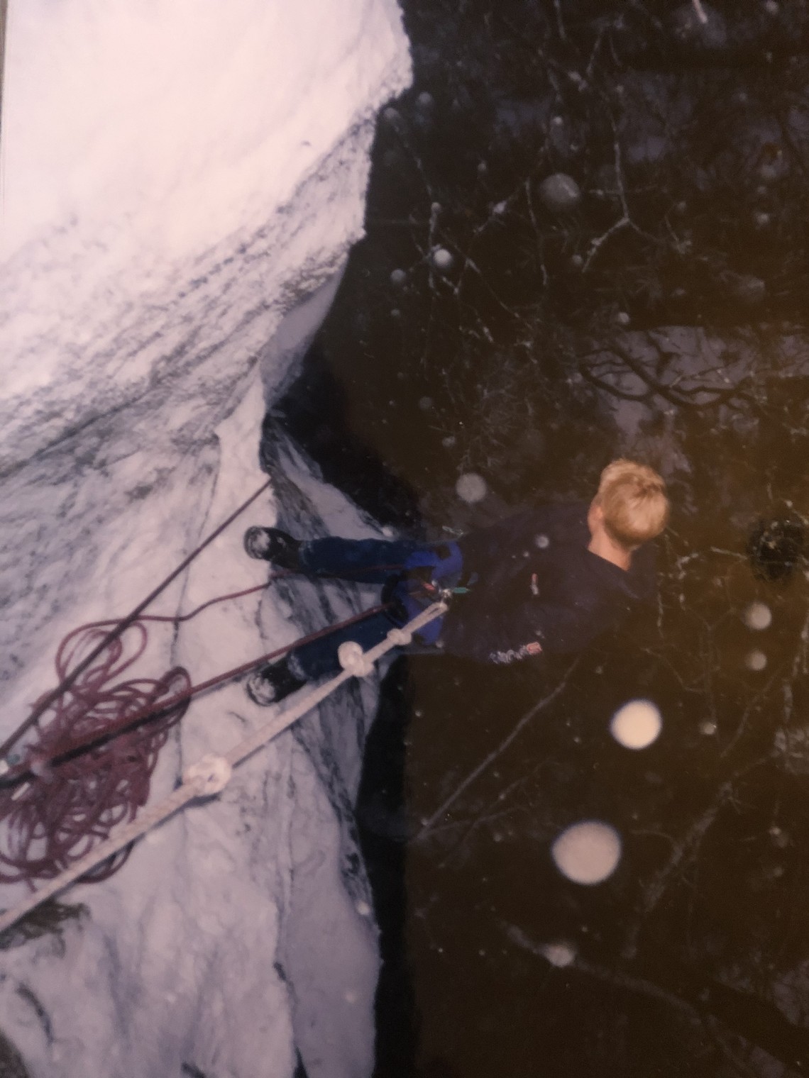 Vinterklättring -97 Linus Söderberg på bild. På Leden ”Gastar med kvastar” (The Rock)