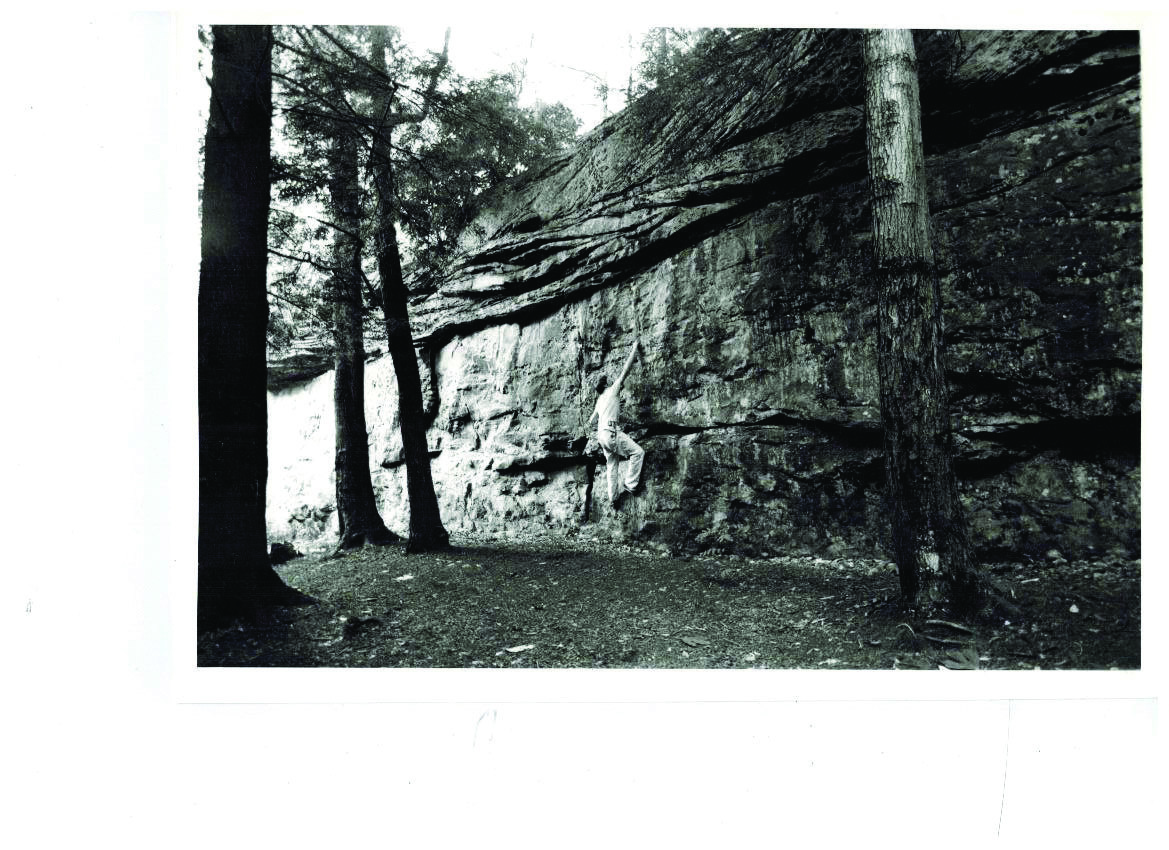 Bruce Burgin one of the New's first climbers doing an early ascent at Beauty Mountain Boulders