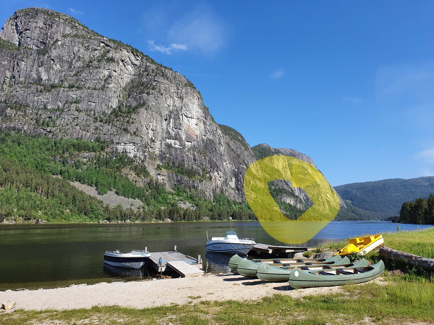 Fun crag with cano approach. You can rent canoes at Sølvgården.