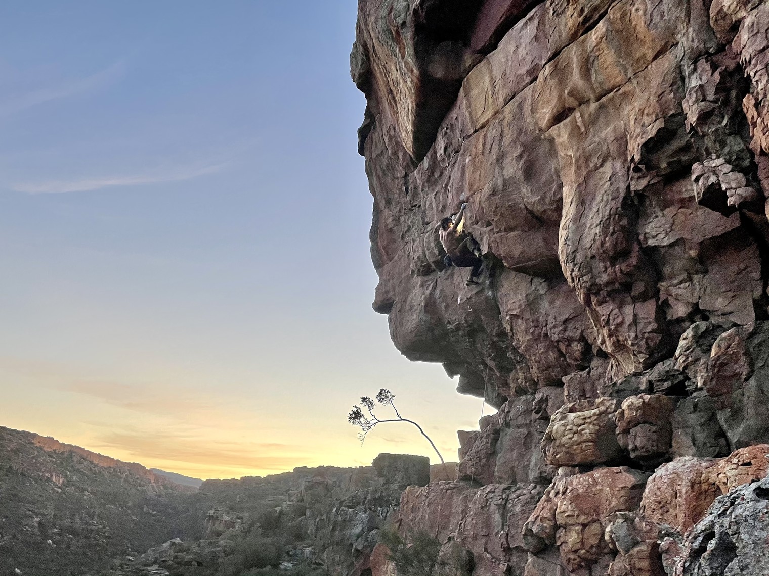 Joe Mohle on the opening ascent of Bread and Butter, 7c, Upper Left Side bolted by Sean Maasch