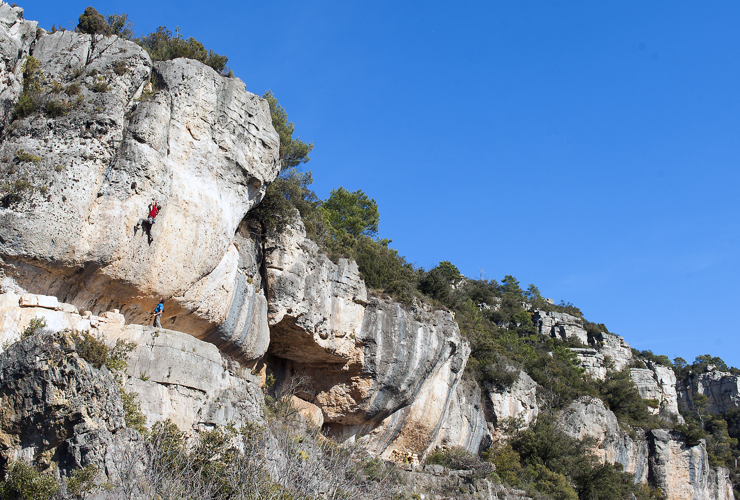 Dave Hesleden climbing 'Fes, Fes' (7b/+), Mas de Carles.
