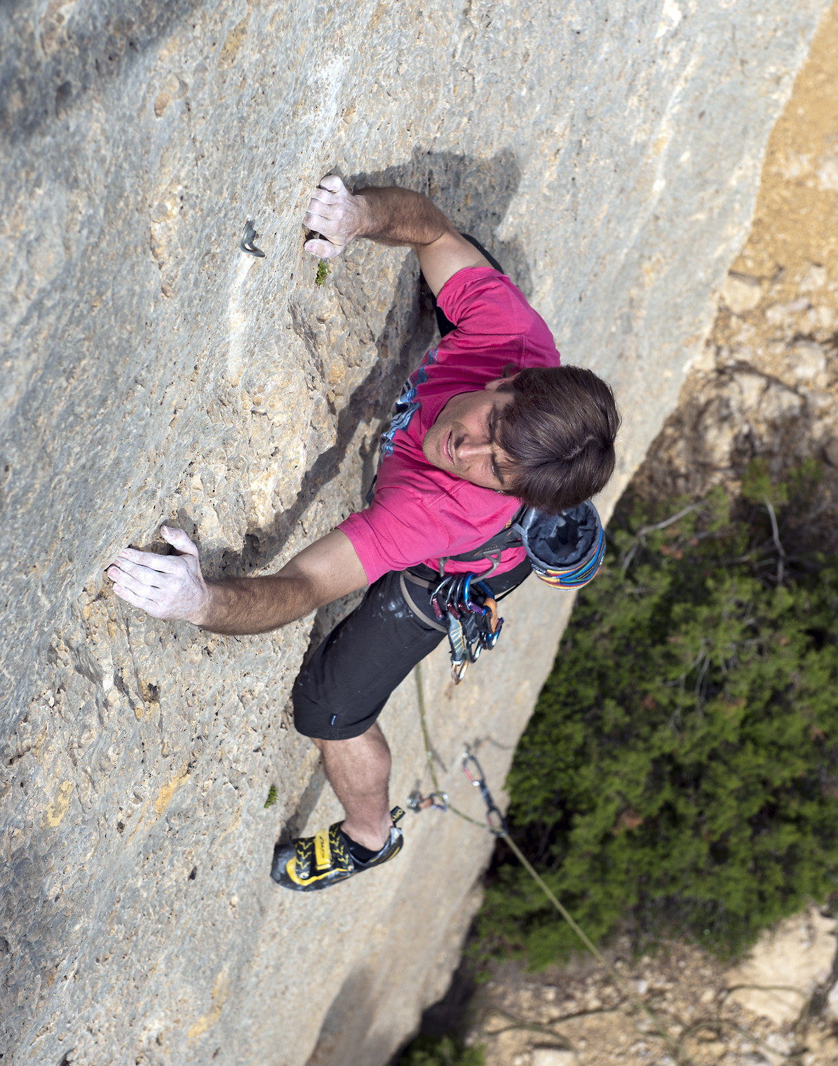 Toni Guiu climbing 'Kriminal de Muntanya' (7a), El Camping.