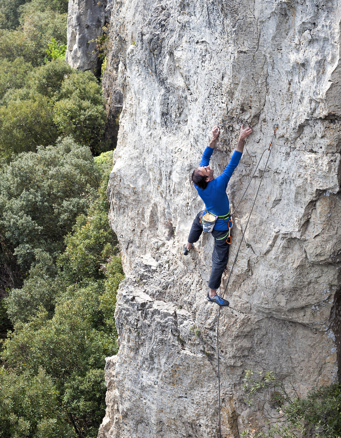 Salva Muñoz climbing L'Esparracada (6b+), Les Gralles.