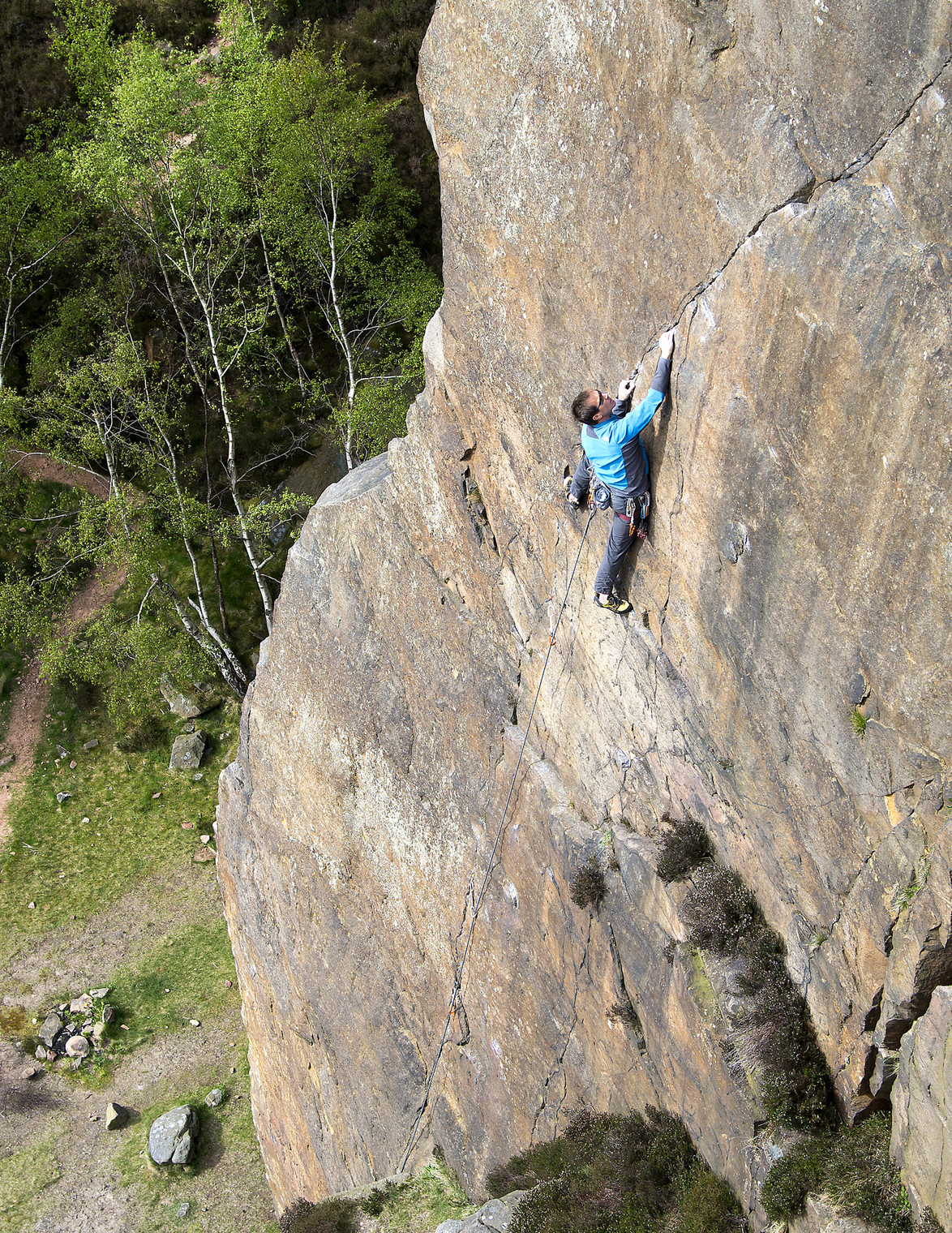 John Scott climbing the upper pitch of 'Knightsbridge' (6b / E2 5c), The Embankment Area..