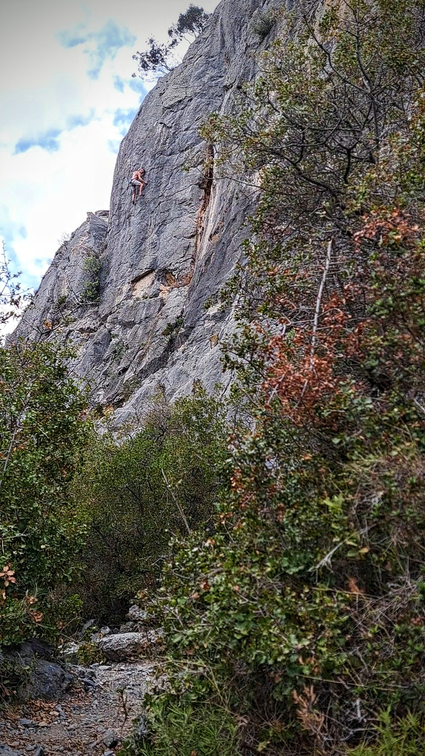 Matti in Groland. Technical, fingery climbing on super sharp limestone.