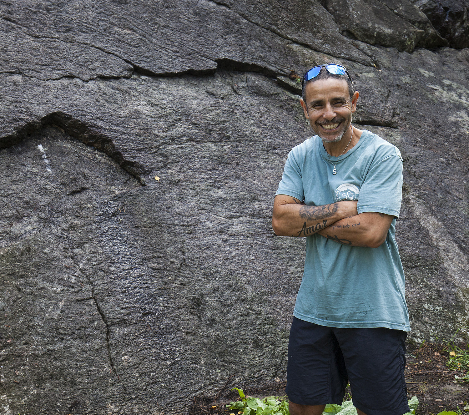 Mojje Mohand in front of the wall.