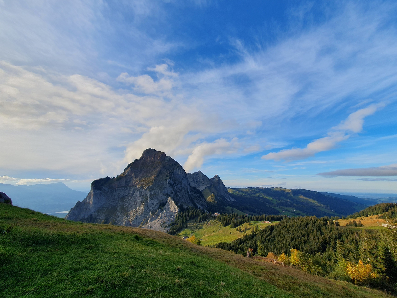 Holzegg crag at the foot of majestic Gross Mythen