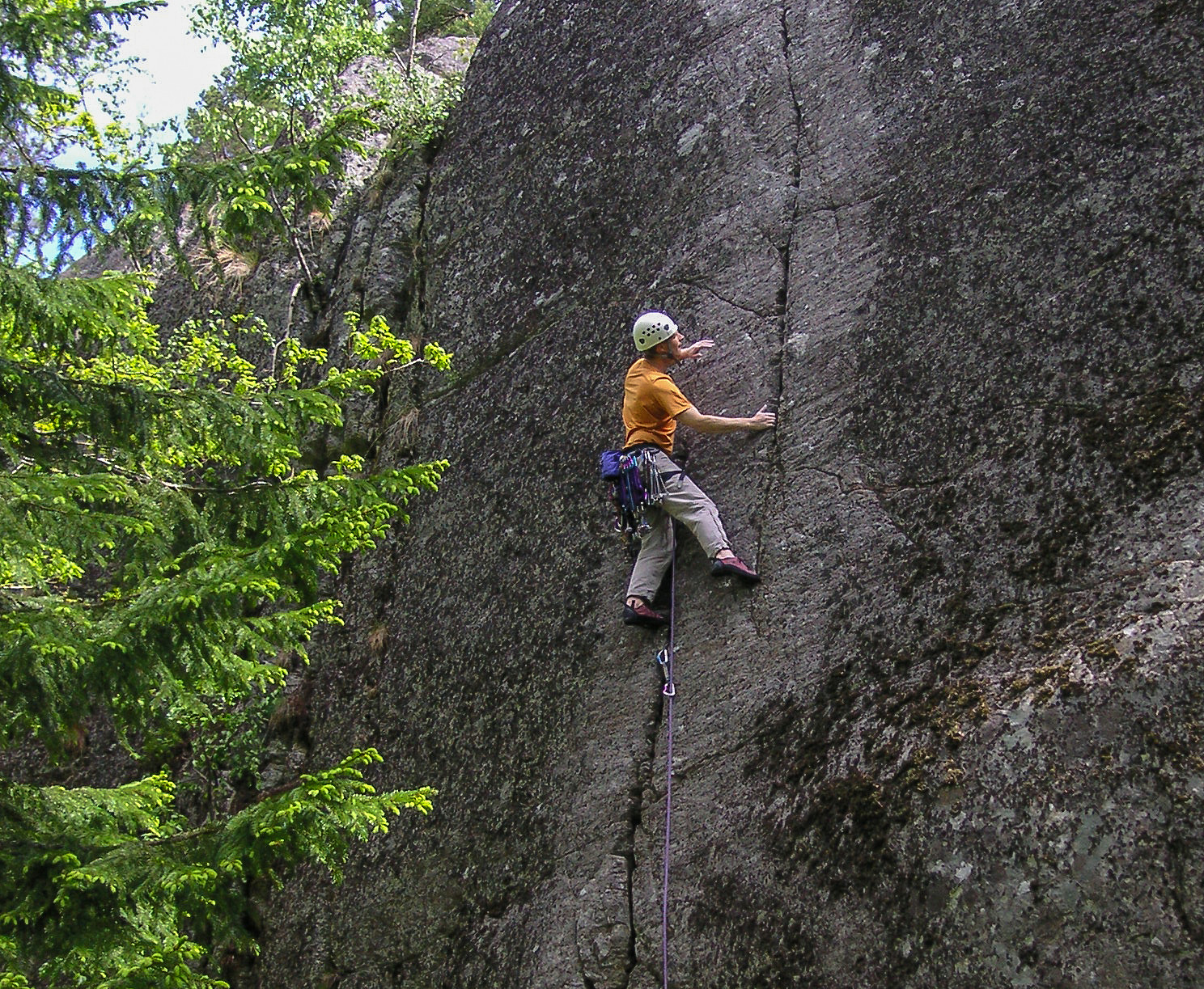 Örjan Lindunger under förstabestigningen av leden "Sprickor till barnen" (2005). Foto: Patrik Hedengren