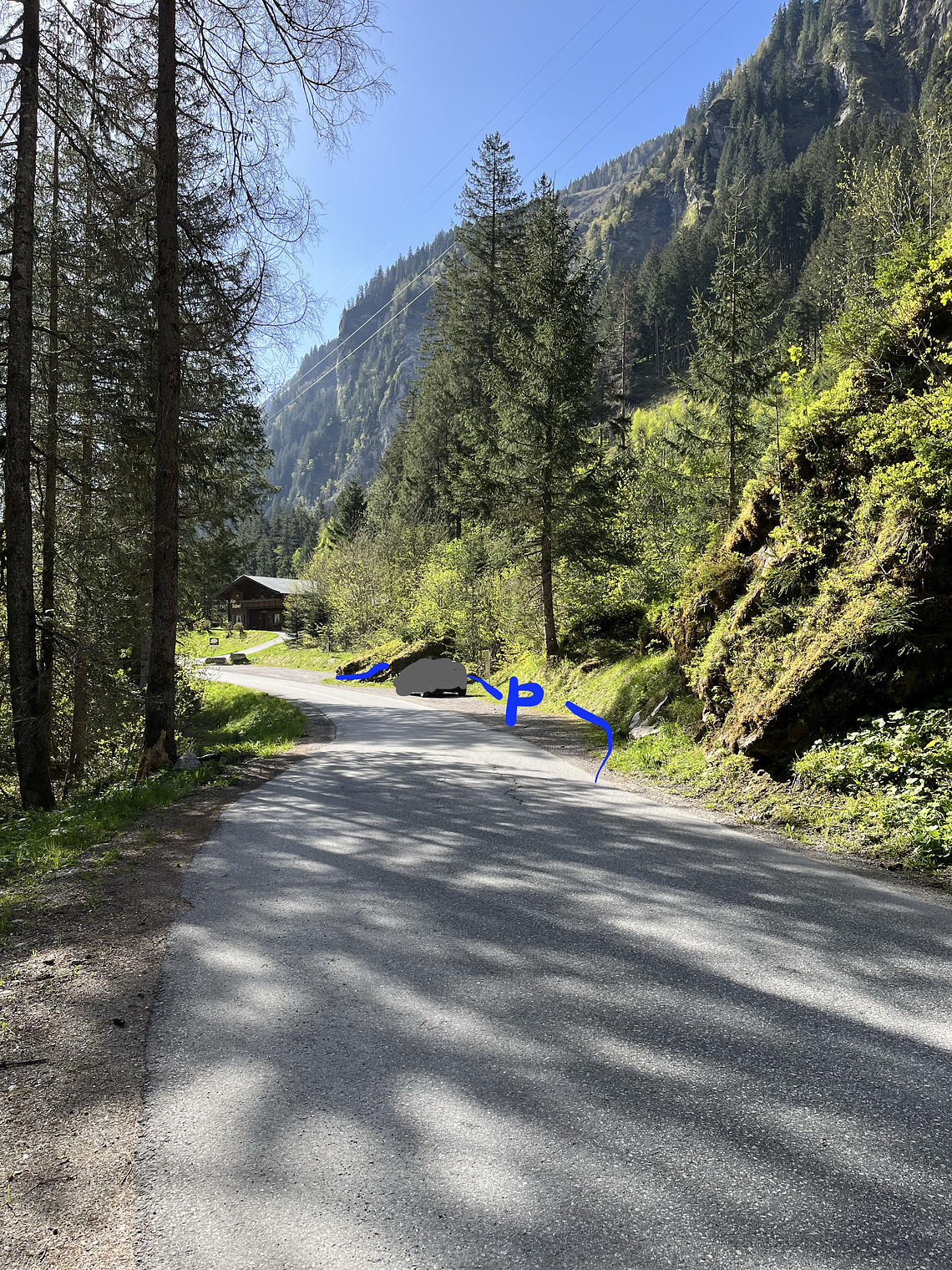 Parking lot with alm in background