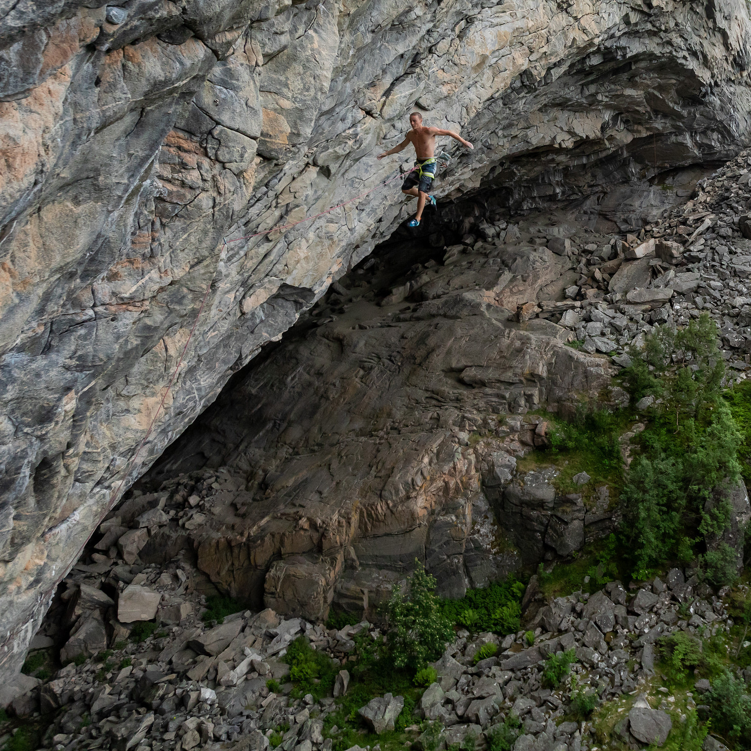 Leo Boe demonstrates how to get down from a 40 meter route with a 70 meter rope