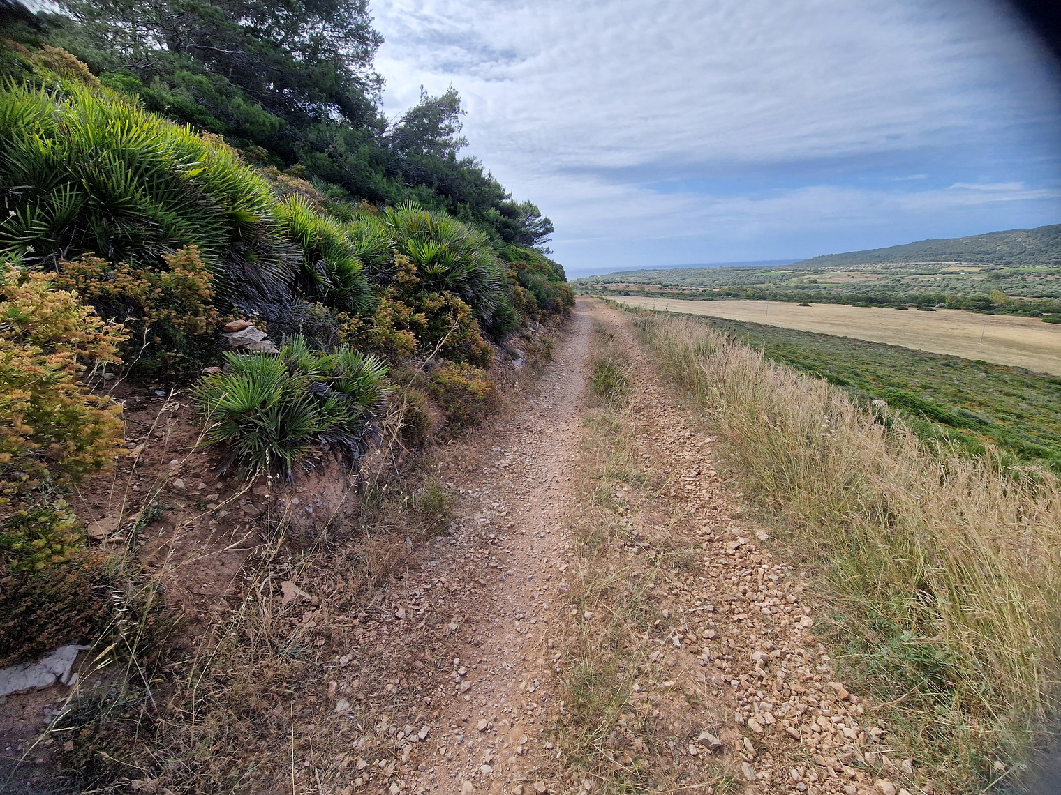 the beginning of the access at a pile of stones by the side road
