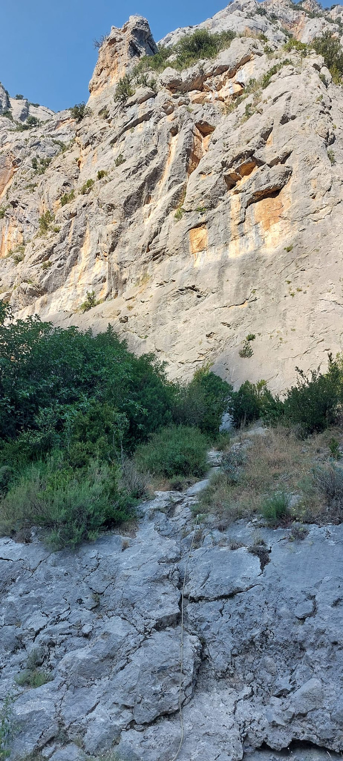 view from the road: use the rope to access the El Niu site.
