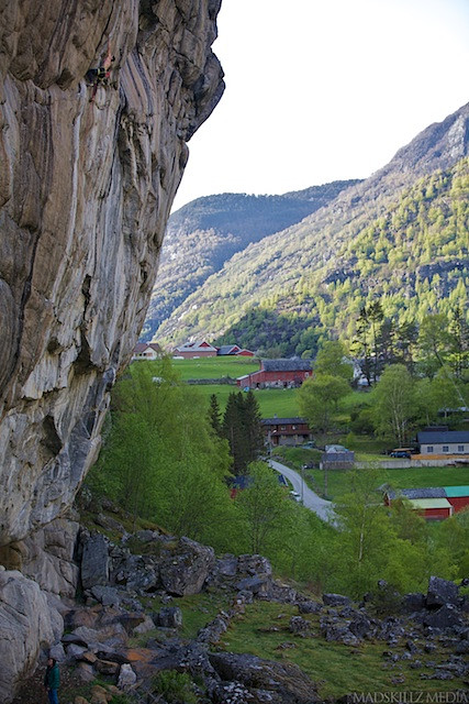Joe Kinder trying the test piece of the crag - Henning`s Gym 8b+