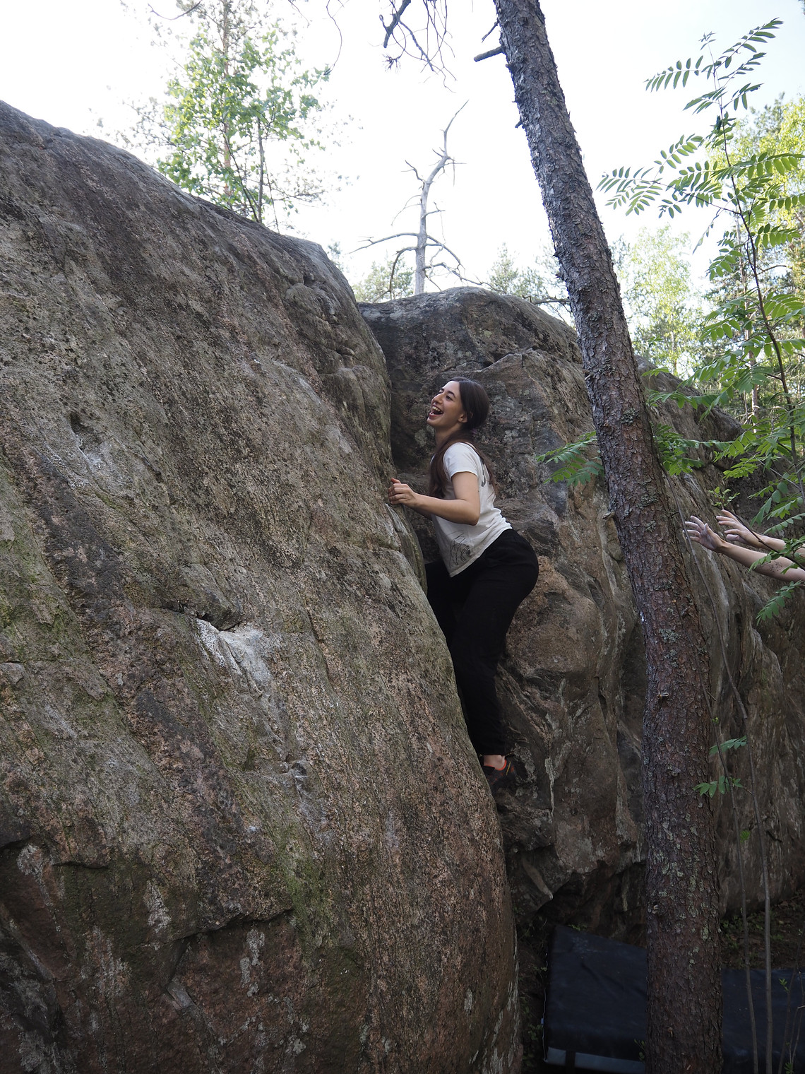 Dijana being all smiles while climbing Giant Tiny Kitten.