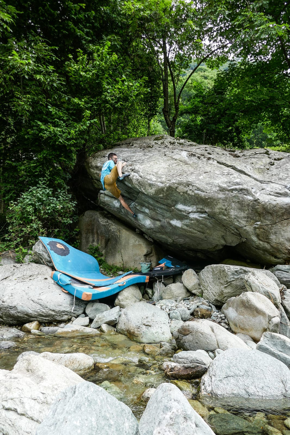 Bouldering on the side of the river, amazing opportunity to get fresh after