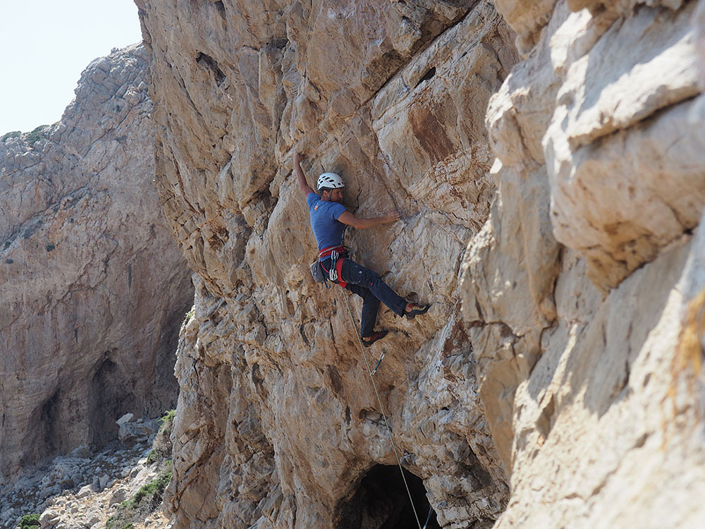 A. Kraszewski during the first ascent of the 'Goat's Story' 6b+. Appetizer sector.