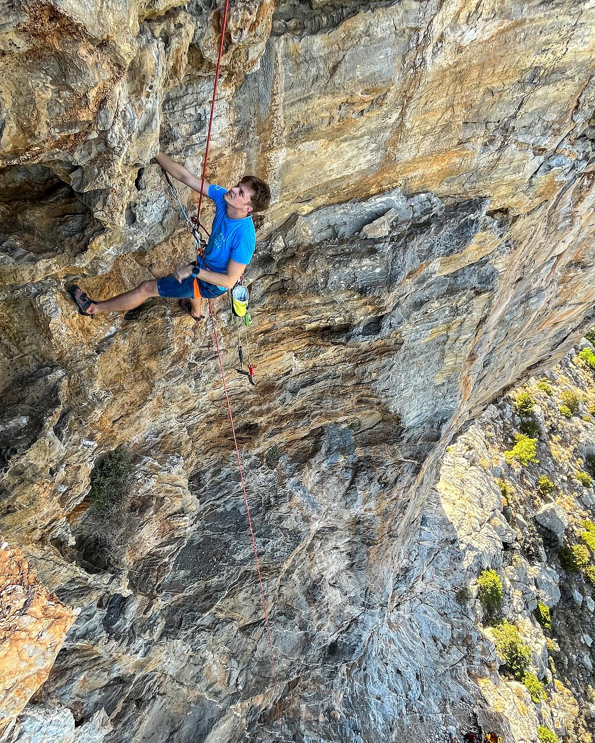 Ivan Novgorodtsev is opening new route 'Ursus' 6a+. Bayern Block sector.