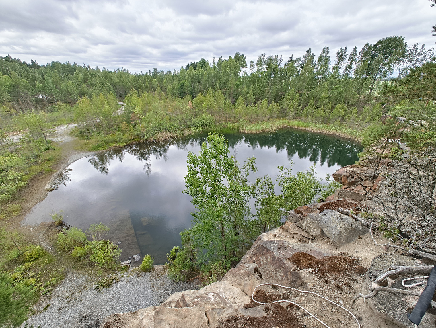 View from the top of the crag overlooking the water filled quarry
