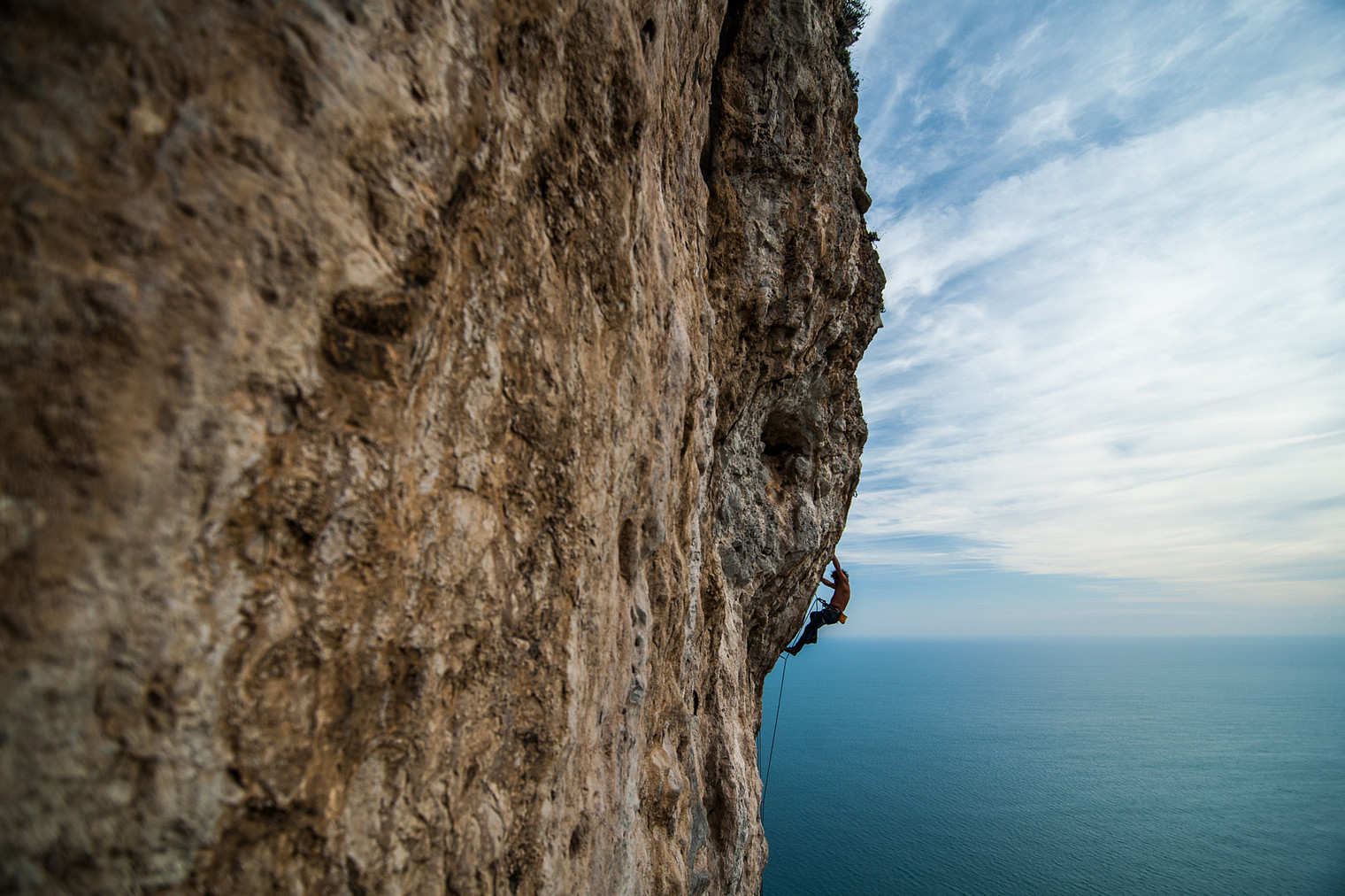 Andrea Caso climbing over the sea