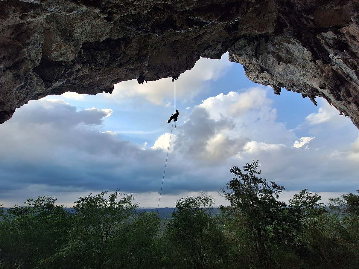 Jędrzej is bolting his new route