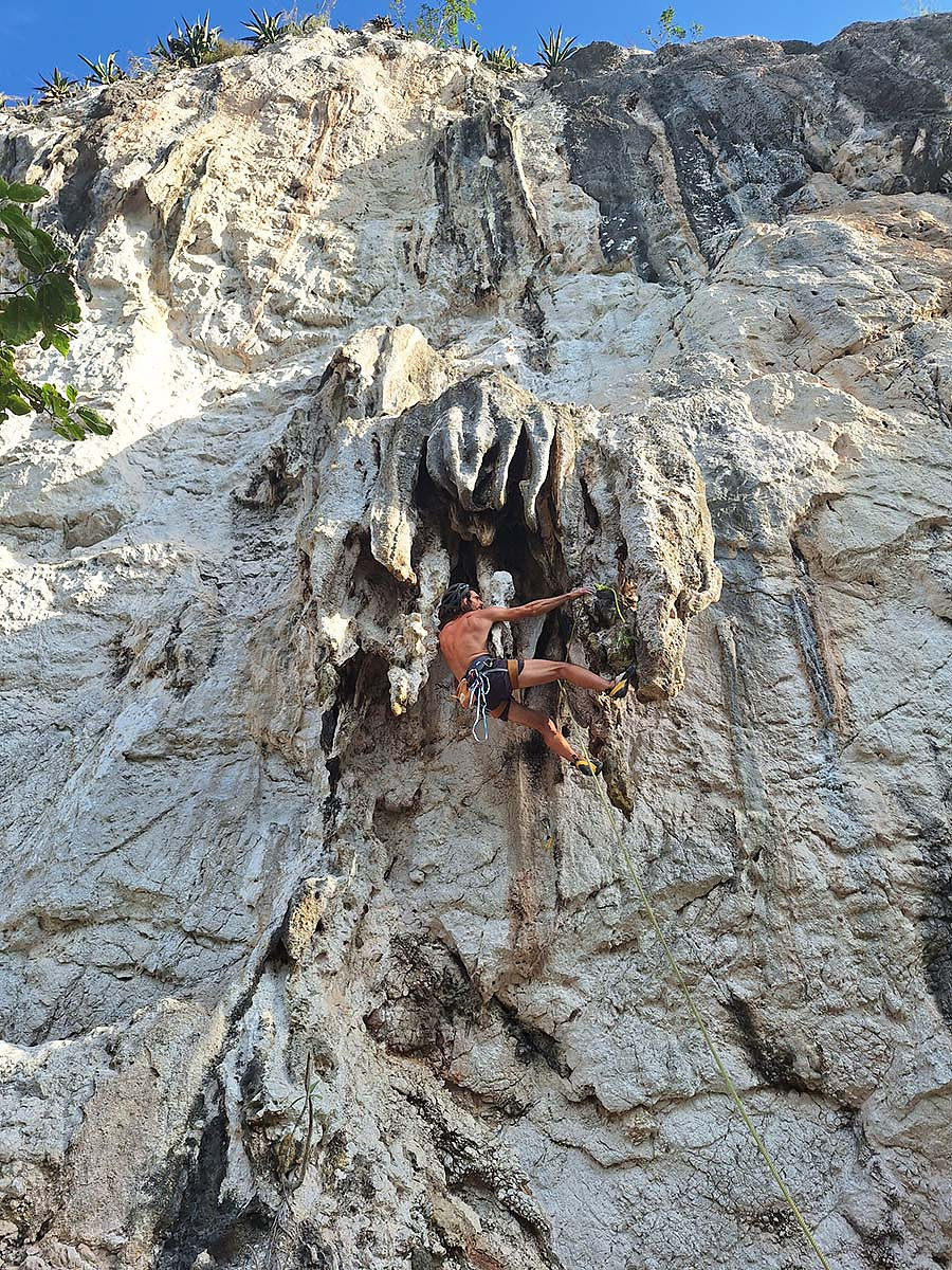 Adam Wolski is climbing his new route (FA)