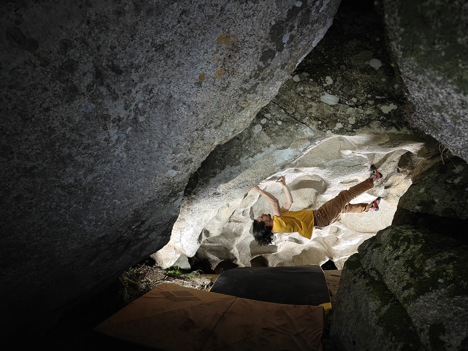 Mikael climbng in the roof at night