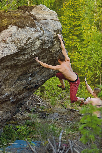 Eero Virtanen climbing nice problem called "Lokki ja meripoika". Year was 2006.