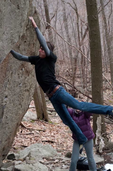 Matthew Tschippert trying to hold the swing after feet cut on Coral V7