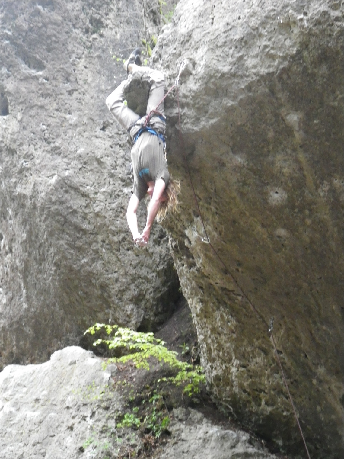 Unknown climber taking a goofy no-hands rest on Range Rover (6b).
