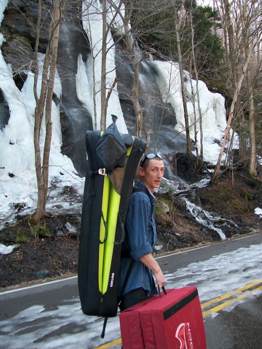 Hiking to the boulders early spring in VT