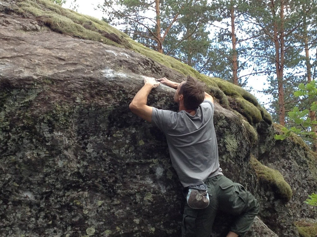 Old man looking for round holds in Topping 'System of Down Grading'
